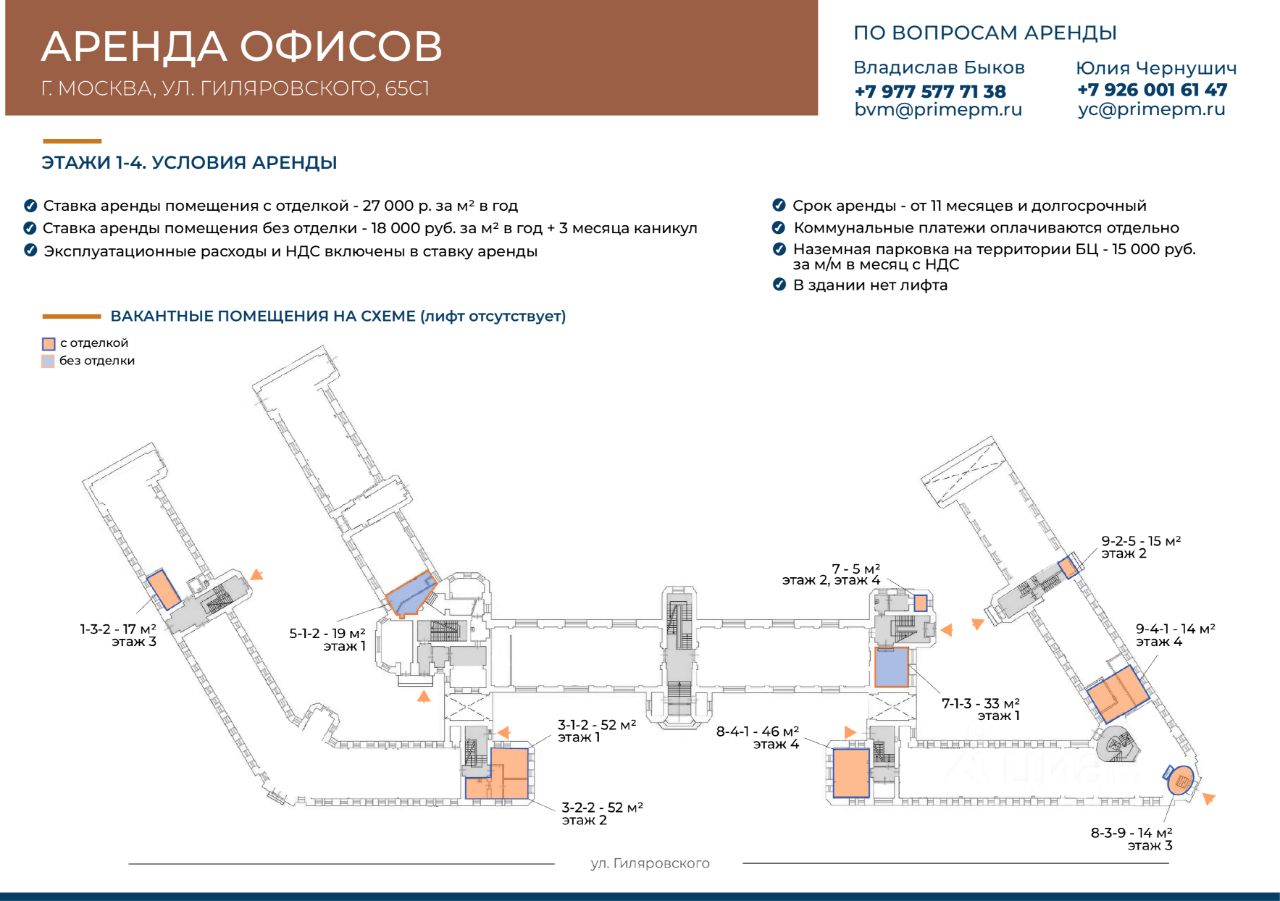 АРЕНДА ОФИСОВ ОТ СОБСТВЕННИКА от 14 кв.м до 52 кв.м (с 1 по 4 этажи) с отделкой.
