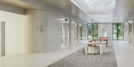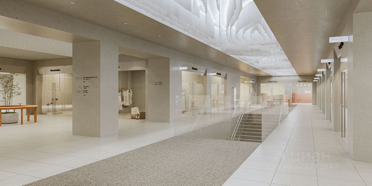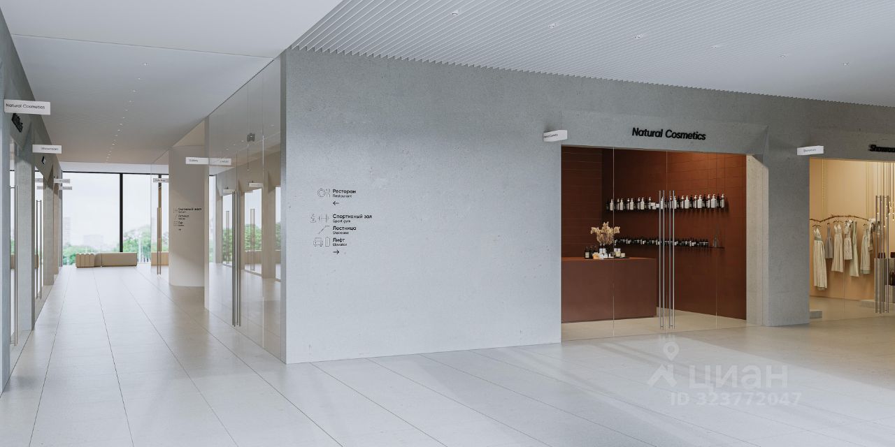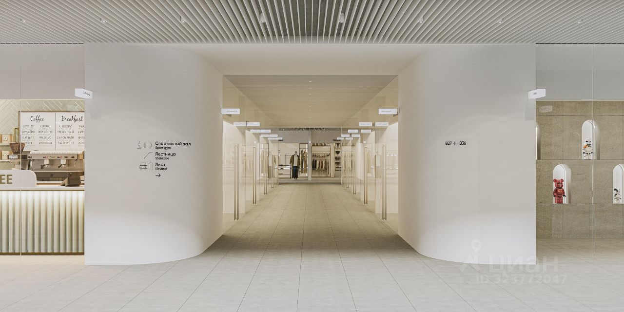 Помещение с отделкой Shell&Core и витринным остеклением находится на втором этаже торговой галереи на стилобате, соединяющем две 24-этажные башни слева от входа в столовую, которая будет генерировать внушительный трафик всего бизнес-центра.