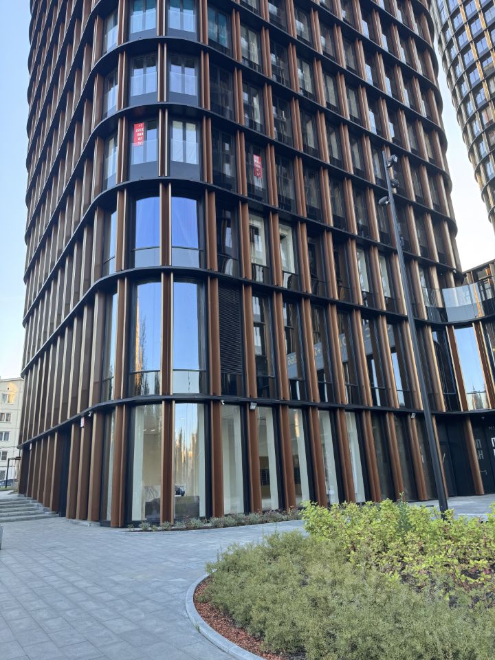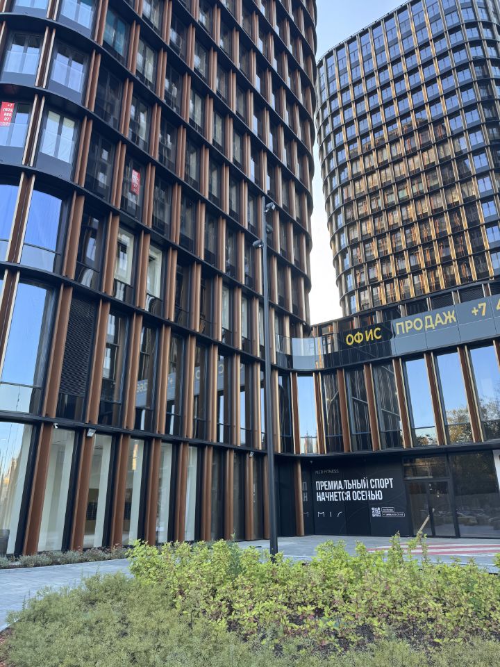 Вход в подъезд элитного жилого комплекса находится непосредственно рядом со входом в помещение.