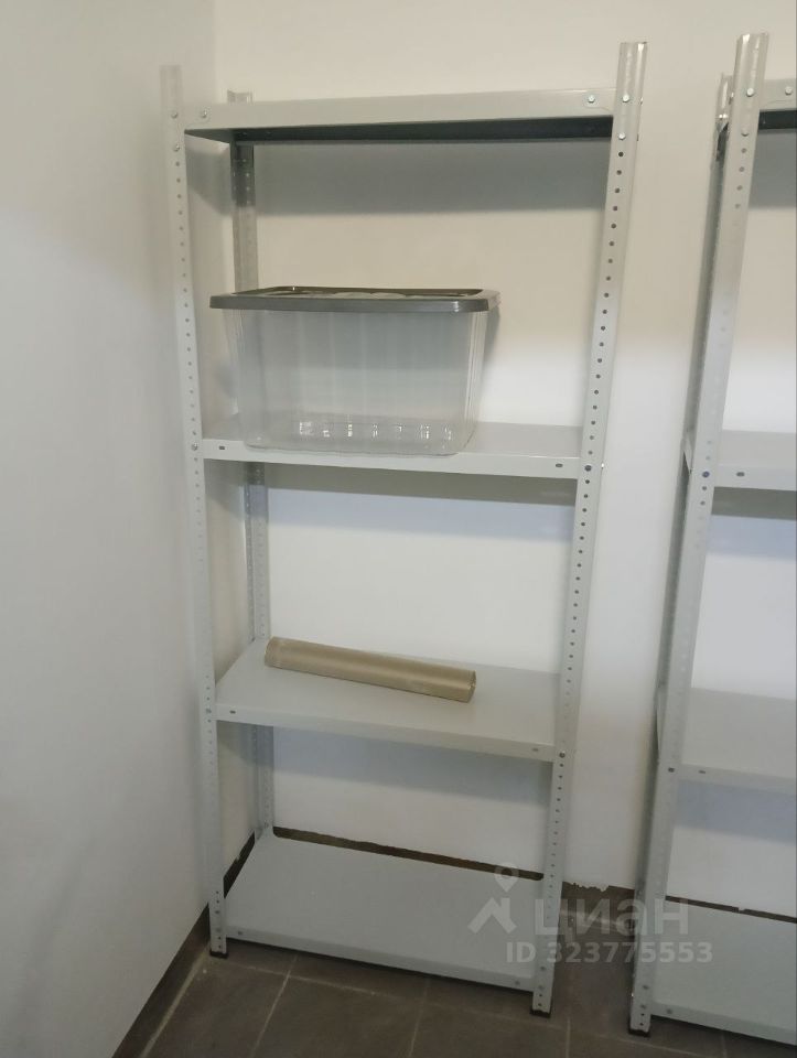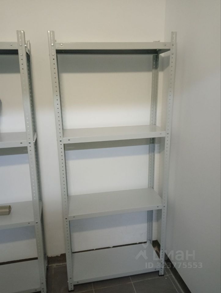 В кладовке 2 новых металлических стеллажа с размерами: 180cм высота, 70cм ширина, 30см глубина. По 4 полки. Нагрузка на полку 100кг. Нагрузка на стеллаж 500кг.