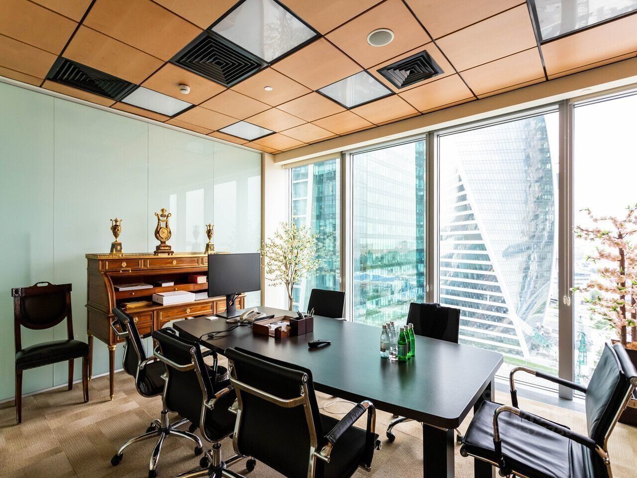 Офис 723 м² на 59 этаже башни в комплексе Город Столиц — это ваша визитная карточка, которая производит впечатление еще до начала переговоров. Панорамные окна от пола до потолка открывают потрясающую перспективу на город, наполняя пространство светом и создавая ощущение простора и свободы.