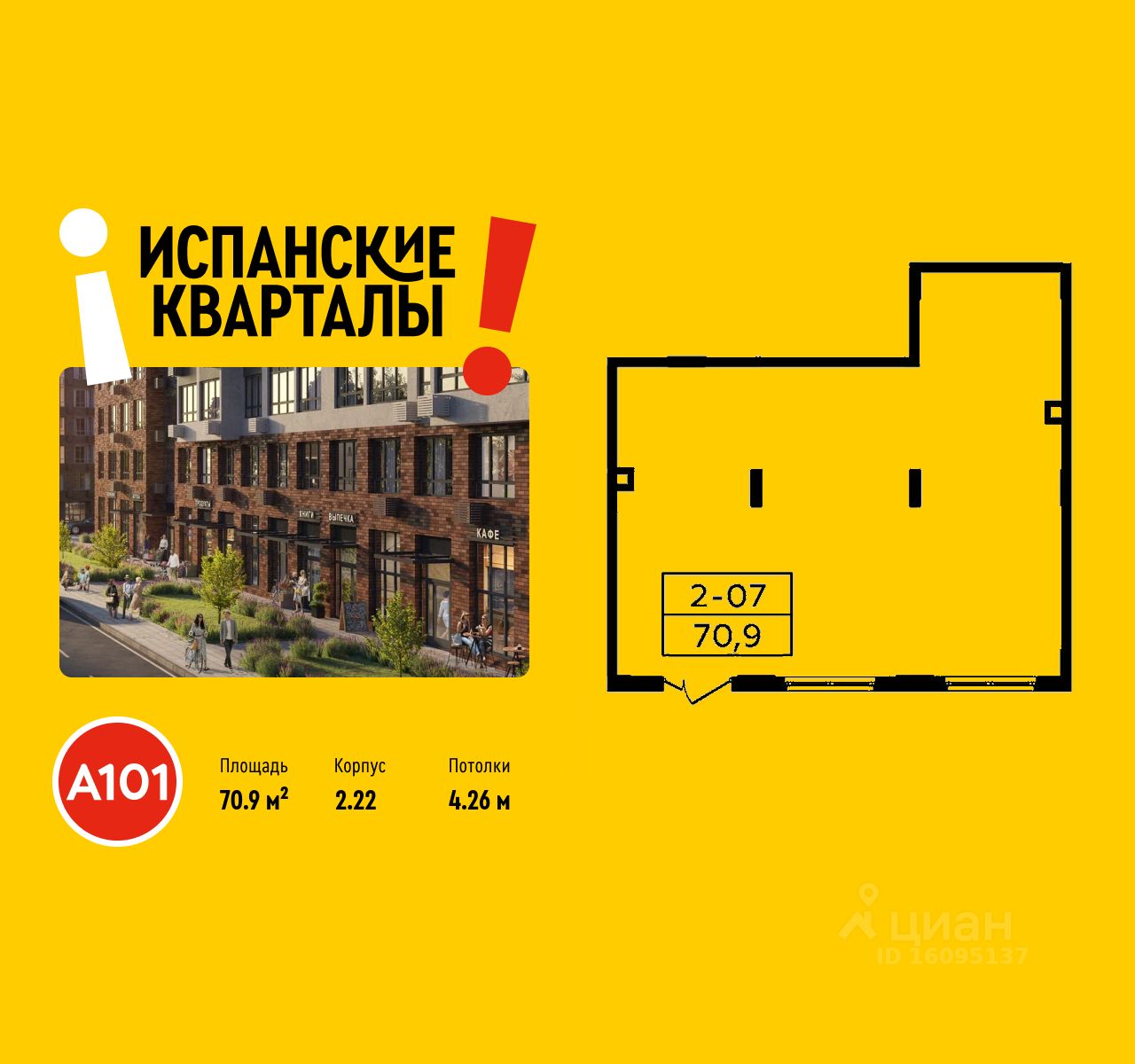 Сдается помещение площадью 70.90. на 1-м этаже ЖК "Испанские кварталы". Трафик 807 человек в день.