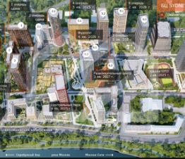 -на территории в 19,3 га ведется строительство ЖК "Sydney City", состоящий из 10-ти корпусов переменной этажности (от 20 до 44 этажей), рассчитанных на 3 277 квартир;