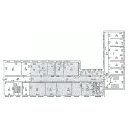 Блок включает в себя 18 светлых комнат, оборудованных кондиционерами, просторный коридор, кухню, санузел, зону ресепшена и серверную. Высота потолков составляет 3 метра, отделка стен — обои под покраску, установлены окна ПВХ и металлическая входная дверь.