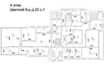 Арт. 89425929. Предлагаю помещения под офис на Цветном бульваре 22 стр.1 на 4 этаже. 474.8 метров кв. 50 т.р. за кв. м. в год. ВСЕ включено (можно с мебелью). Блок на весь этаж,. Есть место на п/парковке 25 т.р.в месяц. Бизнес Центр на Цветном бульваре, 22с1 находится по адресу Москва, Цветной бульвар, 22С1, расположен недалеко от метро "Цветной бульвар", "Трубная", "Сухаревская".