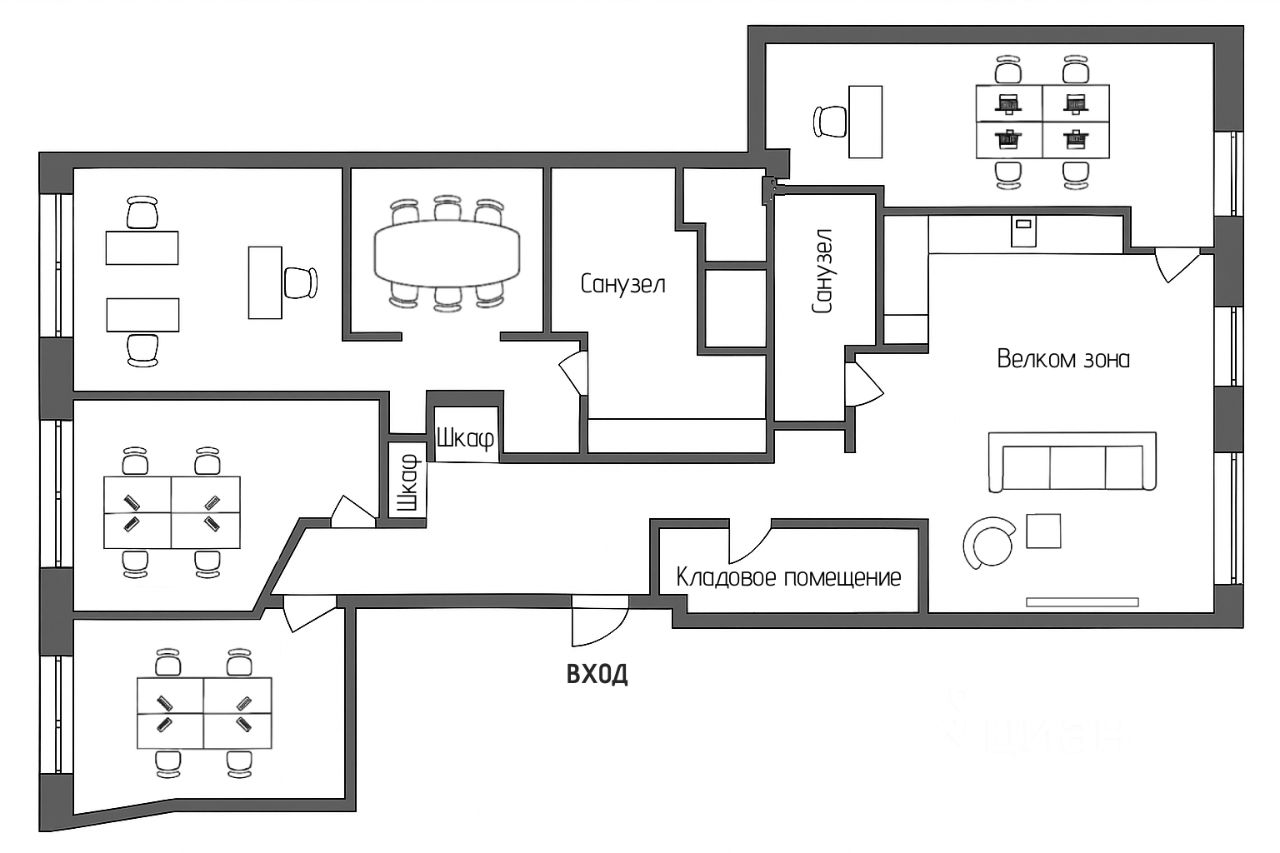 Офис класса А+ . Планировка: 4 кабинета, переговорная, опенспейс и 2 санузла. Качественный ремонт, потолки 3,2 м, приточно-вытяжная вентиляция и система кондиционирования.