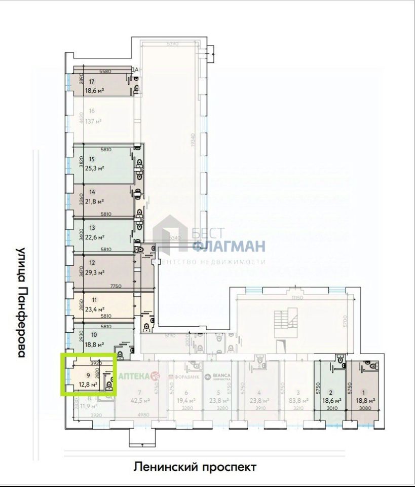 Арт. 125504799 Сдается напрямую от собственника помещение свободного назначения 12,8 кв.м. на первой линии ул. Парфенова и Ленинский пр-кт Есть возможность объединить с соседними площадями и получить 154 кв.м.