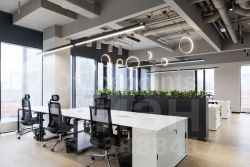 Помещение с дизайнерской отделкой, смешанная планировка. 40 рабочих мест в формате turnkey. В стоимость включены: коммунальные платежи, мелкий ремонт, мебель, копировальная техника и бумага, клининг, кофе поинт, озеленение, ресепшн, СКУД и видеонаблюдение. Панорамные окна. Приточно-вытяжная система вентиляции, центральная система кондиционирования. Наземная парковка (12 000 руб. в месяц за м/место).
