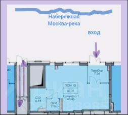 Вход с набережной Москва-реки свободный 24/7, проход для пешеходов с 2х сторон набережной + удачно расположено помещение у прохода к набережной для жителей.