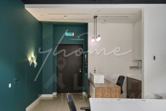• Планировка: кабинет руководителя, переговорная комната, просторный опен-спейс для сотрудников, зона рецепшн с кухней скрытого формата, санузел с душевой.