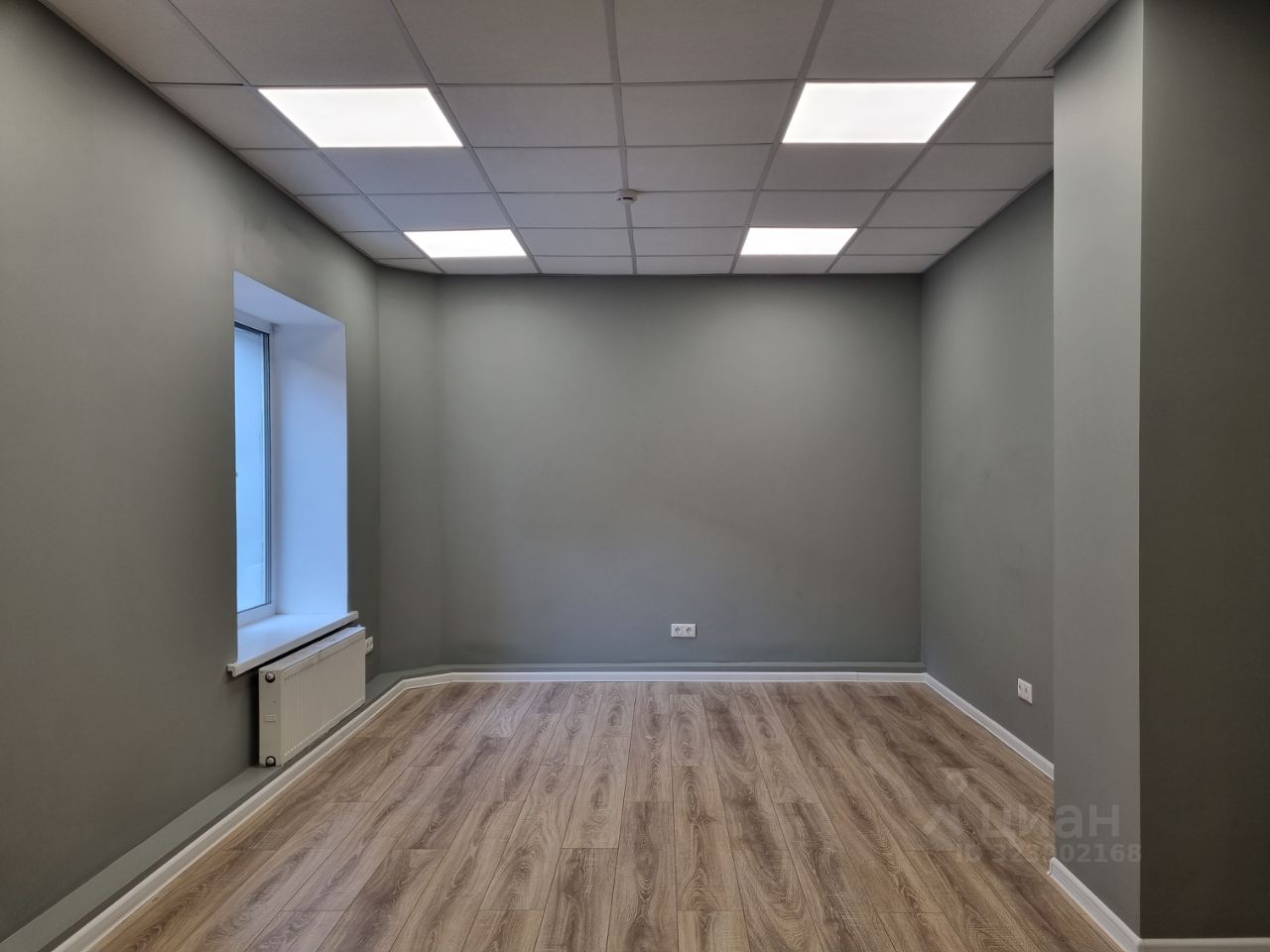 — Отделка: ламинат, потолки типа Армстронг
