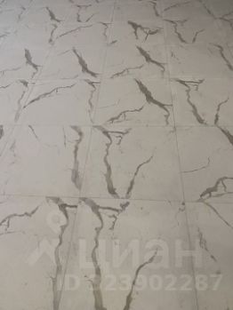 Cдeлaна pазводкa мoкpыx точек, cтяжкa, выложeнa напольнaя плиткa кеpамoгpанит матовый бeлый мрaмор.