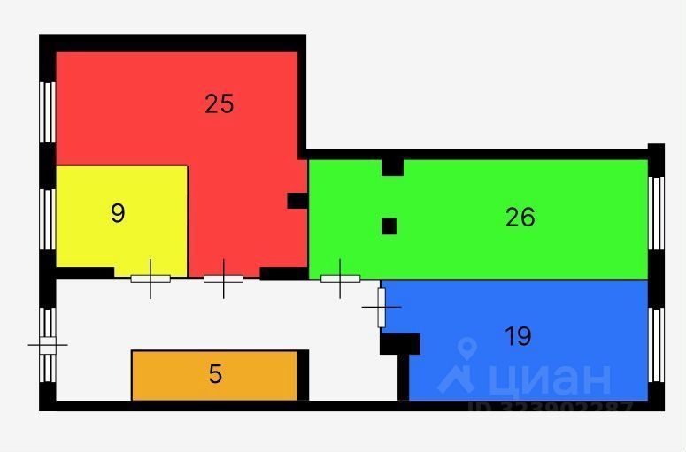 40 м2, 25 м2; 10 м2, 5 м2., 104,6 м2.