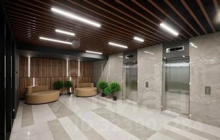 В здании презентабельная входная группа, ресепшен, круглосуточная охрана. В БЦ есть ресторан, автосалон, парикмахерская, в цокольном этаже "Пятерочка".
