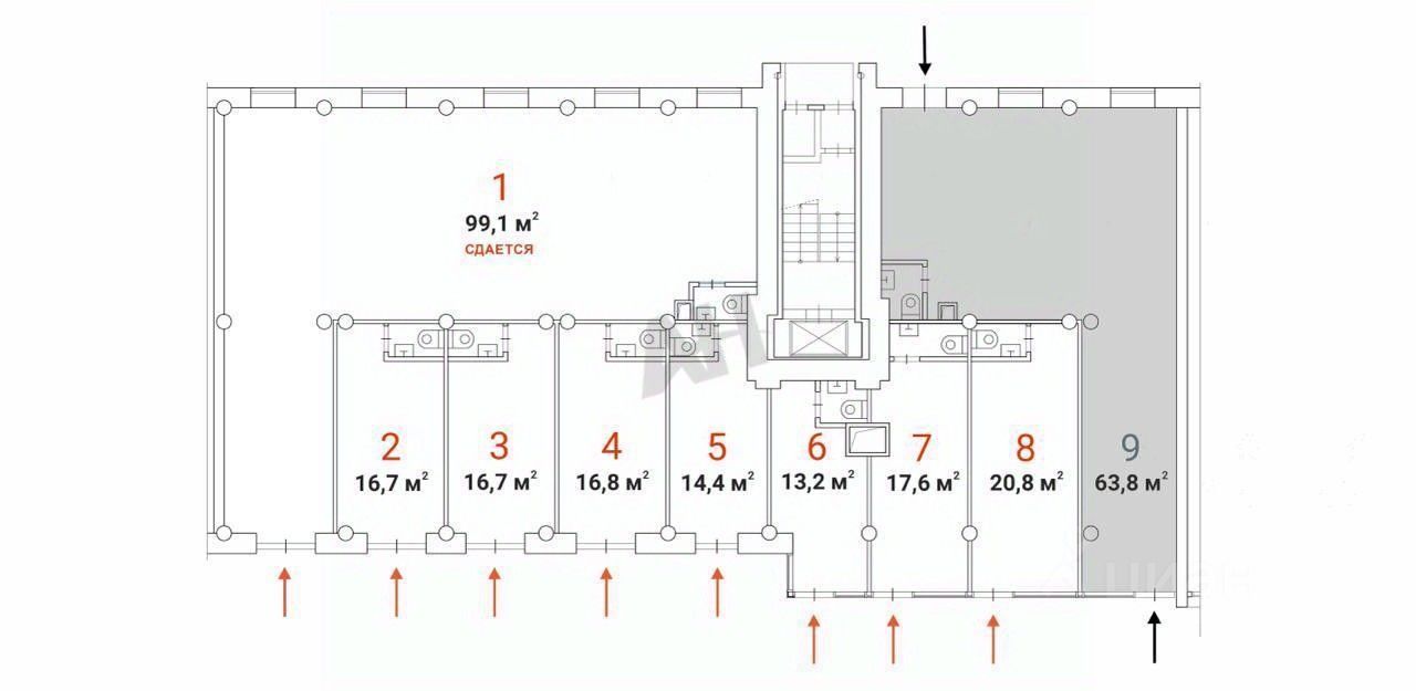 Лот 975592 Предложение от Собственника! Предлагается к аренде помещение свободного назначения площадью 99.1 м² на первом этаже. Объект подходит для организации магазина, аптеки, салона красоты, шоу-рума, ресторана или кафе, химчистки, пункта выдачи заказов или кофейни.