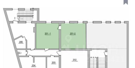 Офисное помещение состоит из двух кабинетов площадью 21,29 м2 и 25,96 м2.