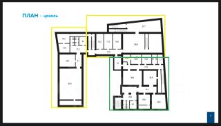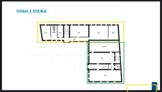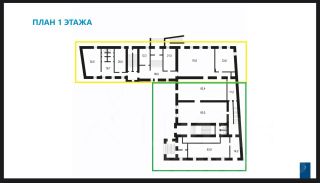 Площадь зданий 1647 м2-желтое и 1579 м2-зеленое. У каждого из зданий есть отдельная входная группа.