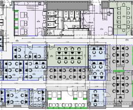 Состоит из 18 кабинетов со стеклянными перегородками, 2 зоны open-space, 3 переговорные комнаты.