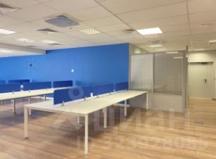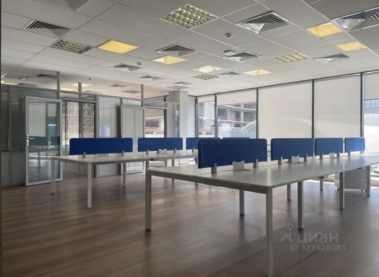 Помещение с витринным остеклением. Основная зона опен-спейс, декоративной перегородкой выделены кабинеты и переговорная. Санузлы в офисе.