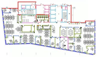 Описание помещения: В блоке есть зона ресепшн, отдельные санузлы, оборудованная кухня.