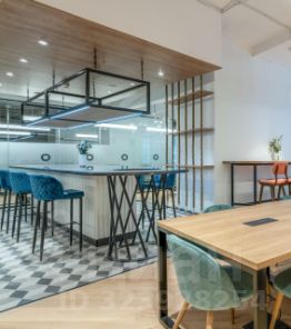 В местах общего пользования есть зона ресепшн и отдыха, переговорные комнаты, оборудованная кухня, санузлы. Выполнен дизайнерский ремонт.
