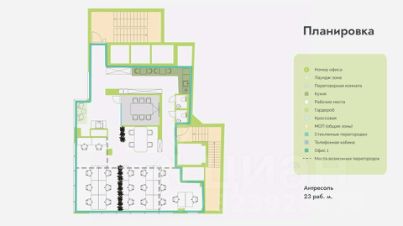 Описание помещения: Антресоль. Офис рассчитан на 26 рабочих места.