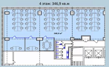 Описание помещения: Презентабельная зона ресепшн, переговорные комнаты и рабочее пространство. Выполнена качественная отделка.