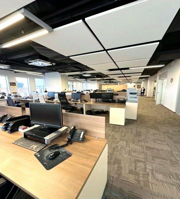 Качественная офисная отделка, функциональная планировка - ресепшн, кабинеты и рабочими зоны для сотрудников, переговорные, кухня, санузлы.