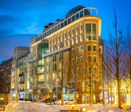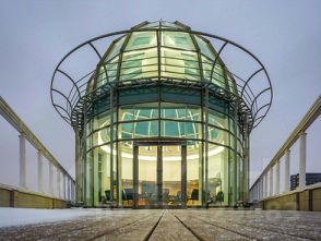 Бизнес-центр представляет собой современное здание с необычными фасадами и стеклянным панорамным куполом с собственной террасой на кровле.