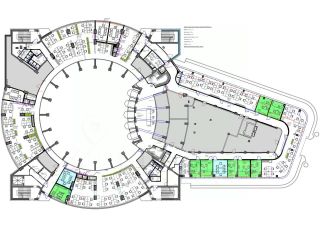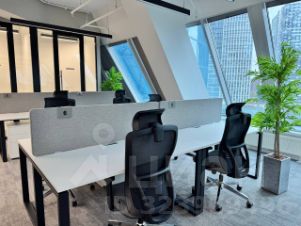 В блоке есть презентабельная зона ресепшн, большая зона open space, отдельные кабинеты и переговорные комнаты, телефонные кабины, гардеробная, оборудованная кухня и кофе-поинт, санузлы.