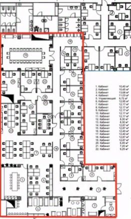 Описание помещения: Офис вмещает до 80 рабочих мест.