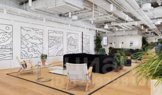 Общие зоны на этаже - ресепшн, переговорные комнаты, оборудованная кухня и зона приема пищи, гардеробная, мягкая зона отдыха.