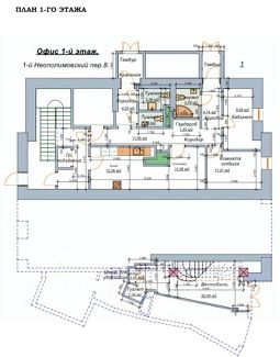 Цокольный этаж - 106,8 м2 и дополнительно 22,6 м2 с отдельными входами.