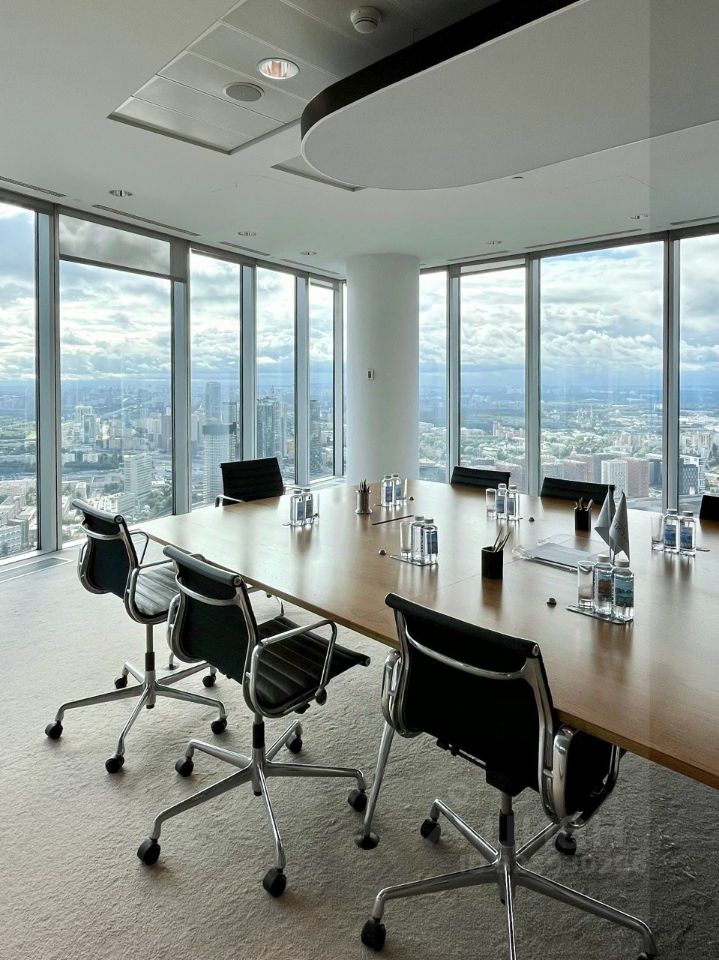 Офис занимает целый этаж идеально подойдёт для комфортного размещения топ-менеджмента компании. Большая видовая переговорная. Просторная зона ресепшн. Есть выделенная зона кухни.