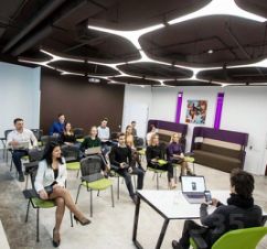 В состав входят зона ресепшена, переговорные комнаты, открытое пространство площадью 115 м2 на 25 рабочих мест, отдельные кабинеты на 125 человек, кухонная зона и санузлы.