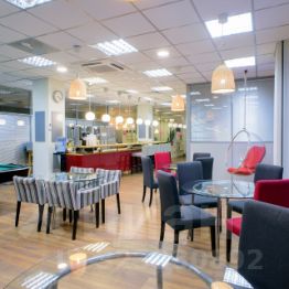 Собственная кухня в блоке, переговорные комнаты, лаунж зоны.