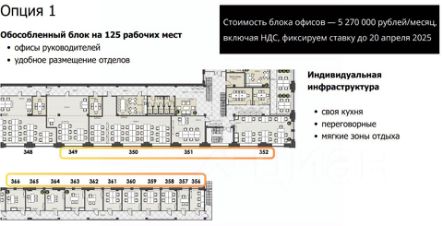 Описание помещения: Независимый блок, рассчитан на 125 рабочих мест.