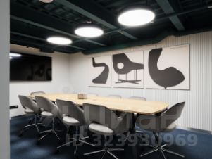 Есть мягкая зона отдыха, переговорные комнаты разной вместимости, оборудованная кухня с обеденной зоной, санузлы.