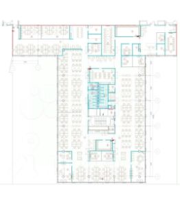 В блоке есть зона ресепшен, гардеробная, кухня, кабинеты, переговорная и кроссовая.
