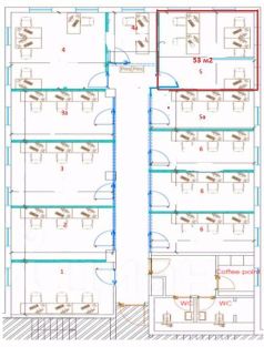 2 этаж - 53 м2, рассчитан на 5 рабочих мест.