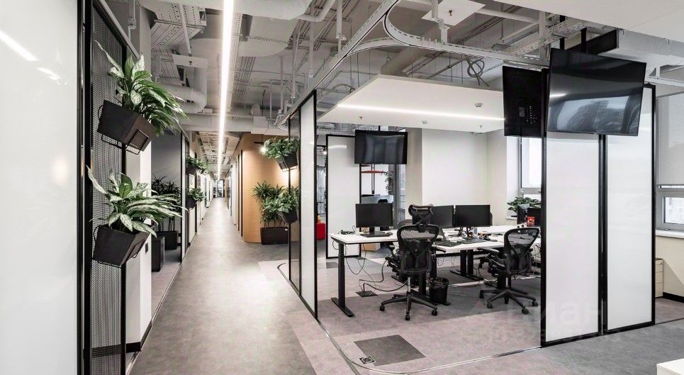 Офисное пространство с панорамным остеклением и дизайнерским ремонтом. Функциональная планировка - есть ресепшн, переговорные комнаты разной вместимости, кухня, санузлы, гардеробная, зоны отдыха.