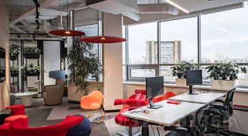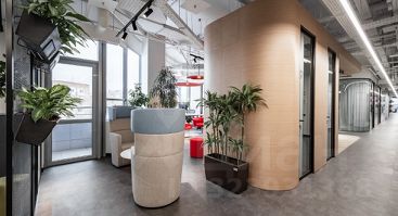Офисное пространство с панорамным остеклением и дизайнерским ремонтом.