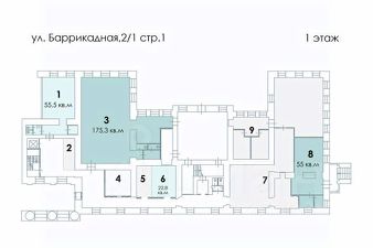 Здание расположено на первой линии. Интенсивный и пешеходный трафик. Непосредственная близость от метро.