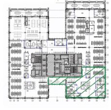 В блоке 7 кабинетов, кухня, серверная, 13 переговорных комнат, 2 террасы.