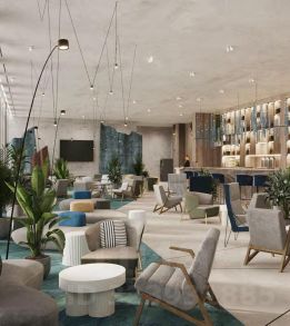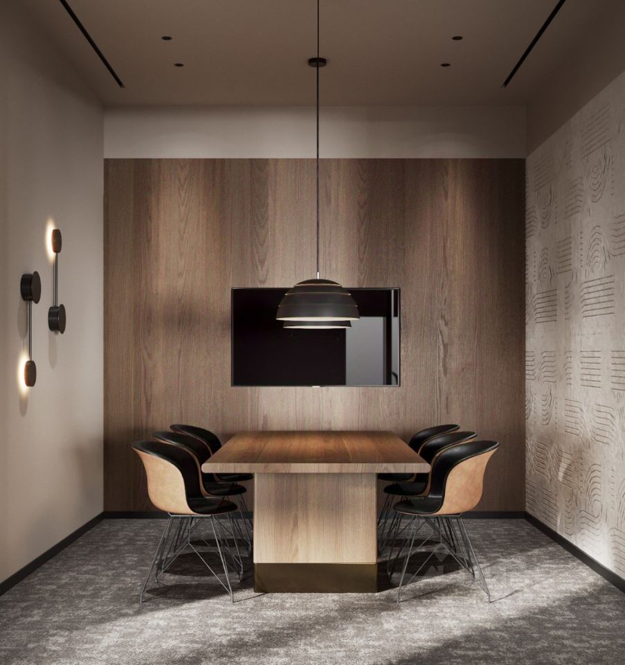 Средняя площадь этажа 550 м2. На каждом этаже предусмотрены зона отдыха и ресепшн, кухня, санузлы, гардеробная, телефонные кабины и переговорные комнаты.