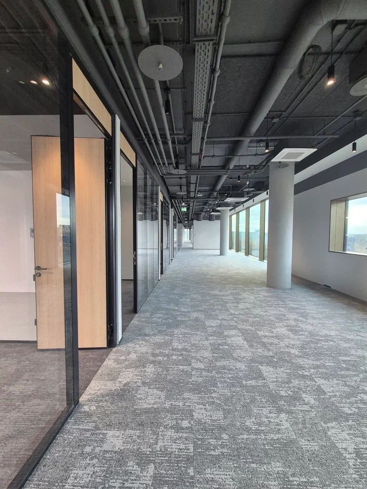 Остекление от пола до потолка. Шаг колонн 9 на 10,5 метров. Фальшпол 200 мм.