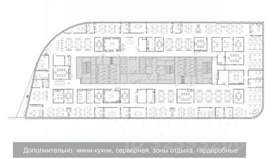 Описание помещения: Целиком этаж. Рассчитан примерно на 212 рабочих мест. Есть зона ресепшн и отдыха, переговорные комнаты, выделенные кабинеты, кухня, санузлы, гардеробная.