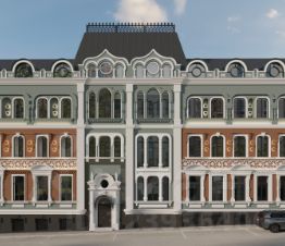 Сохраняя историю особняка, мы создаем премиальный бизнес-центр "Нега" в нео русском стиле, но в современном прочтении. Будут использоваться характерные для этого стиля яркие цвета, растительные орнаменты и аутентичные узоры. Есть помещения с балконами и террасой.