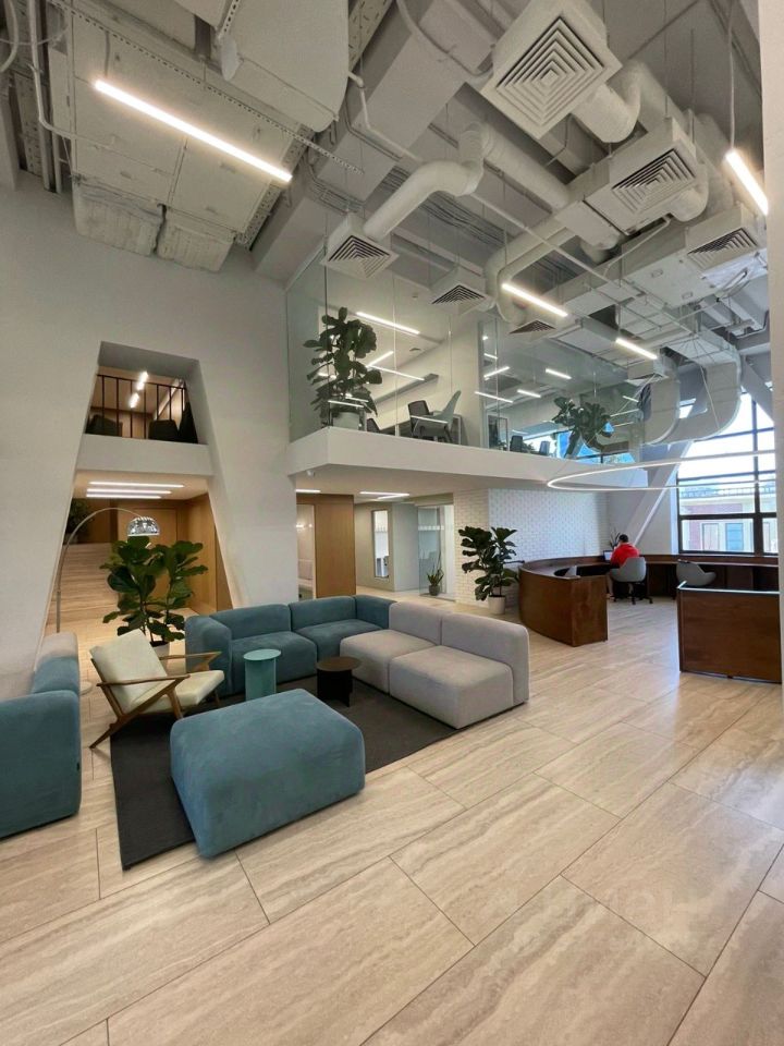 В местах общего пользования есть зона ресепшн и отдыха, кухня, санузлы, гардеробная, переговорные комнаты.