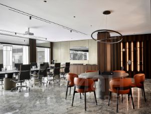 Весь интерьер общих зон и конференц -зала дополняется итальянской мебелью Сamerich, из натуральной кожи, изготовленной по индивидуальному заказу согласно нашим эскизам.